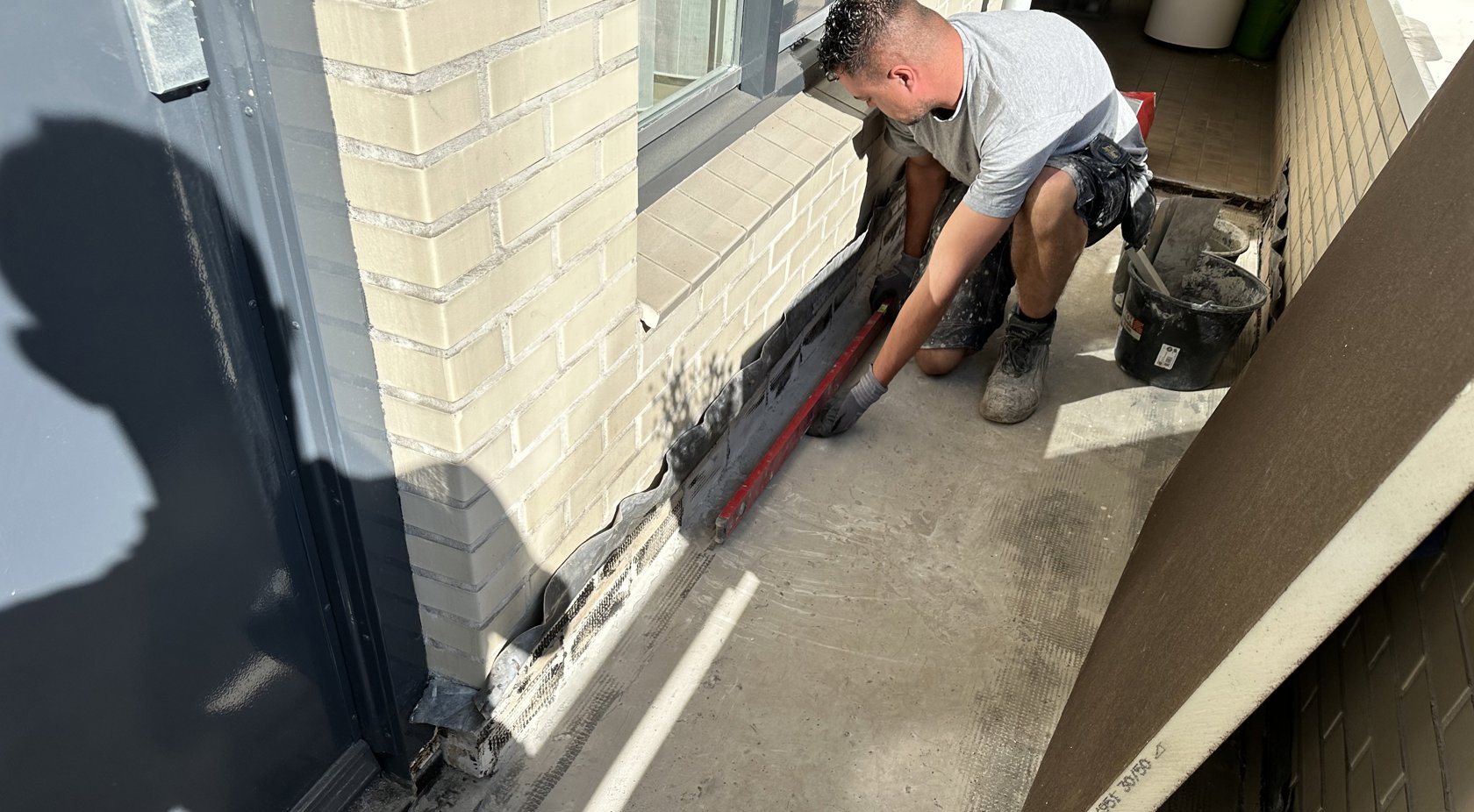 - Het aanbrengen van het Triflex BIS ophoog systeem met isolatie en drukverdeelplaten en afwerken met het Triflex BTS-P systeem